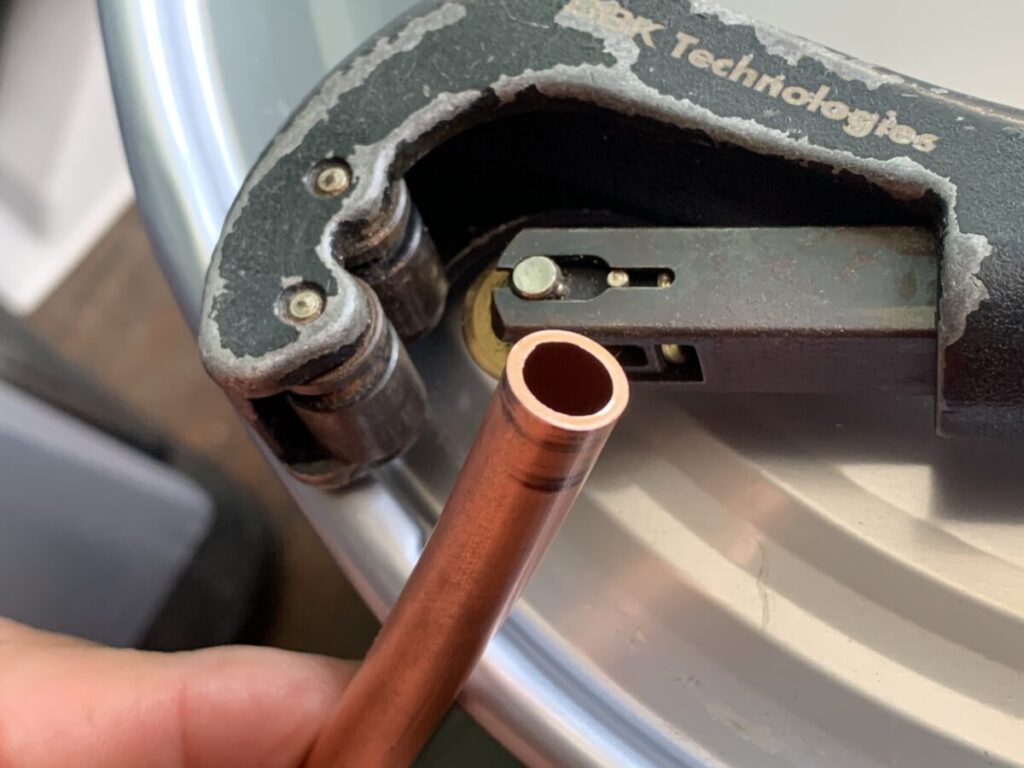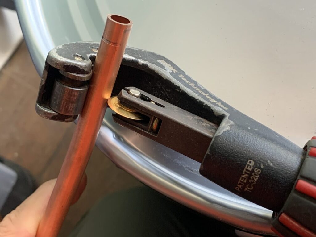 BBKのパイプカッターでカットした配管でのフレア加工