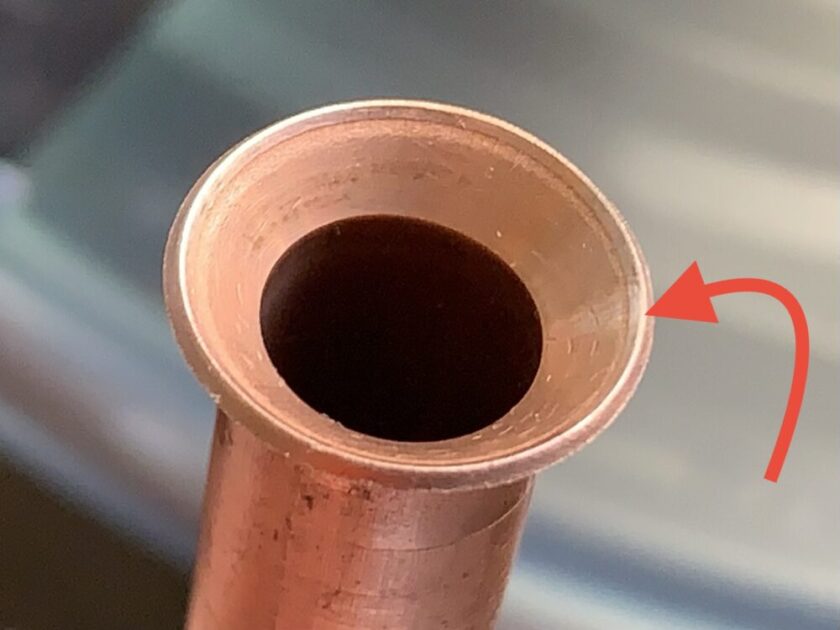 安いパイプカッターでカットした時のフレア加工
