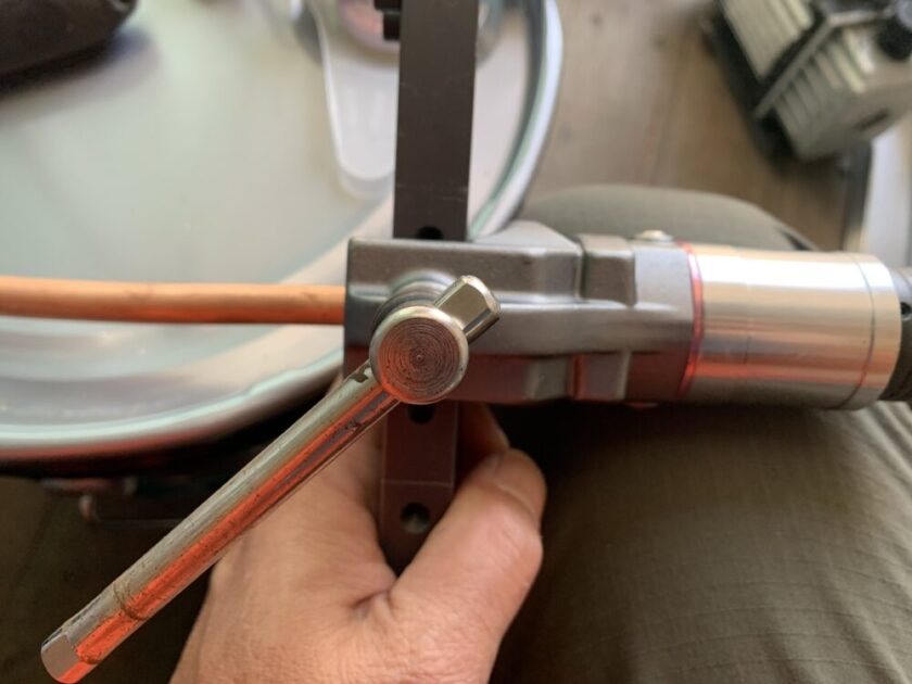 リーマーも目安ですが5回転ほどでバリを取ります。やり過ぎるとフレアの端が薄くなりガス漏れの原因になります。