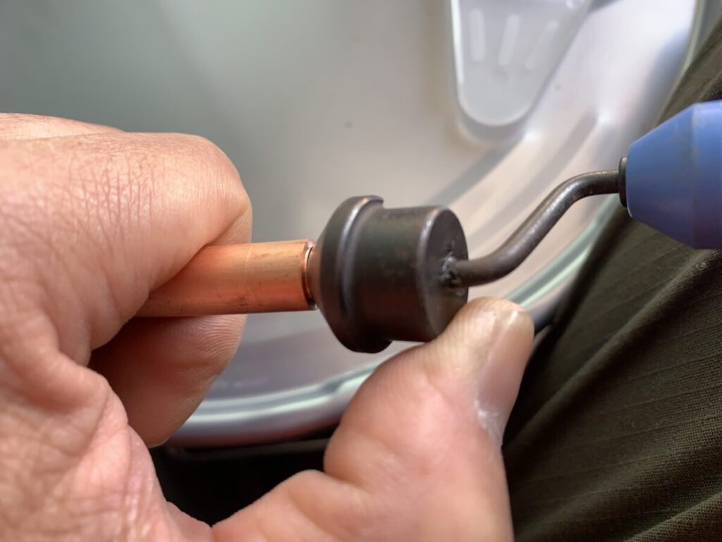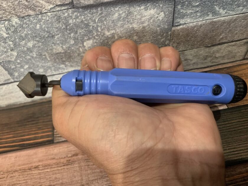 刃先を同管内に入れてクルクル回しバリを取ります。タスコのクランクリーマーと要領は同じ。