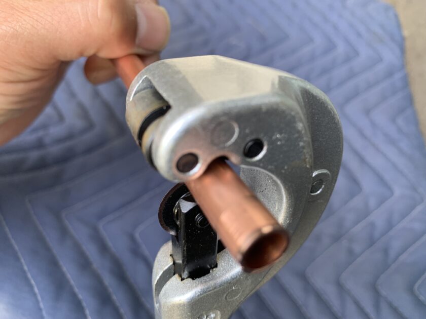 次はBBKのパイプカッターでカットした配管でフレア加工していきます。