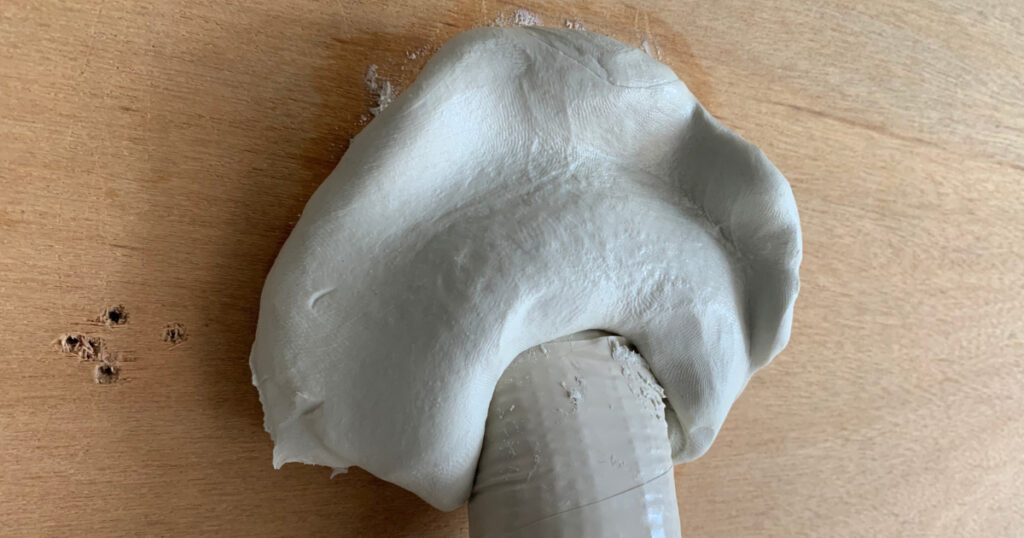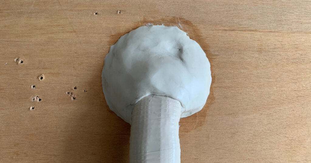 ③(いよいよパテ埋め!)最初は配管の周りにパテを付ける。