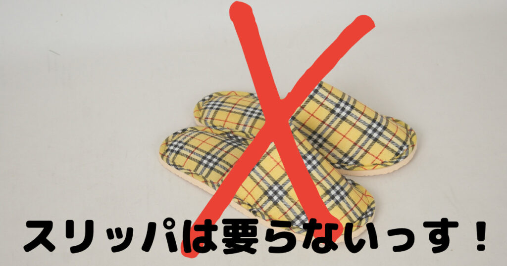 でも言い方が少々キツイかもしれませんが、業者目線で言うとスリッパは絶対に履きません。