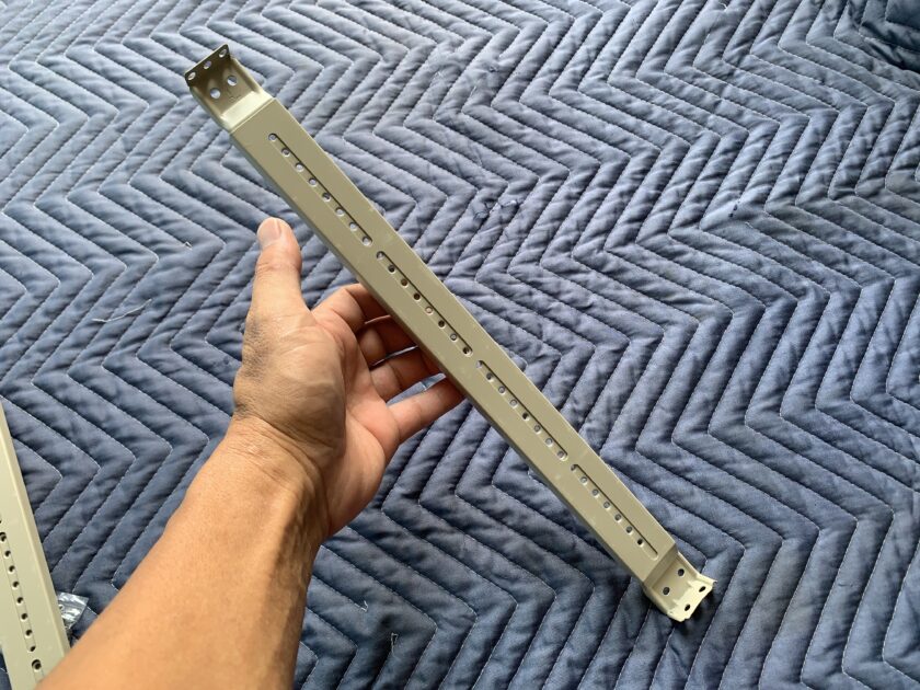 上下スライドして長さ調整が出来ます。片方には据付板を固定出来るビス穴がいくつも空いてます。