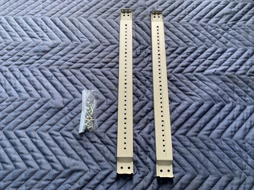 使用前の縦桟(たてさん)も念のため載せておきますね。2本の金具と固定用ビスが入っています。