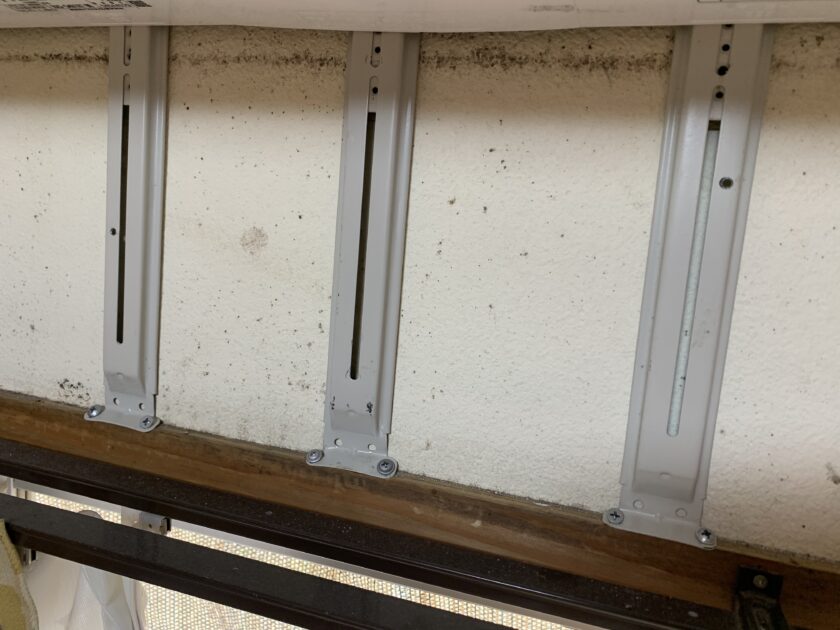 縦桟は2本の金具で固定しますが、このエアコンはめちゃくちゃ重かったので真ん中に1本追加の3本柱で固定しました。