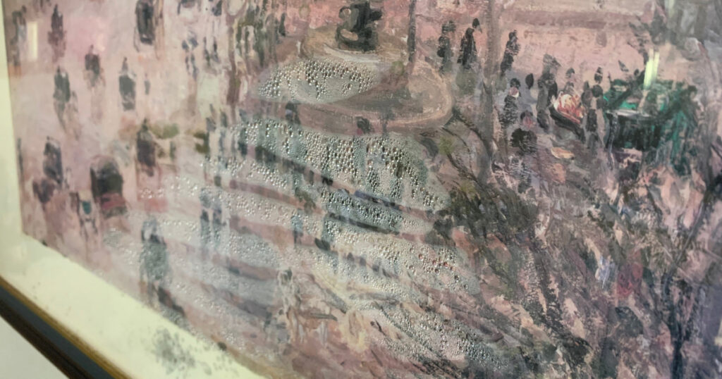 家の中に行くと、エアコンの下に掛けてあった絵も濡れて、