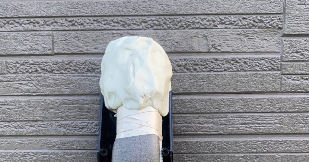 外壁のカバーの画像です。これを外すと配管穴が見えるのでスリーブの有無が確認出来ます。