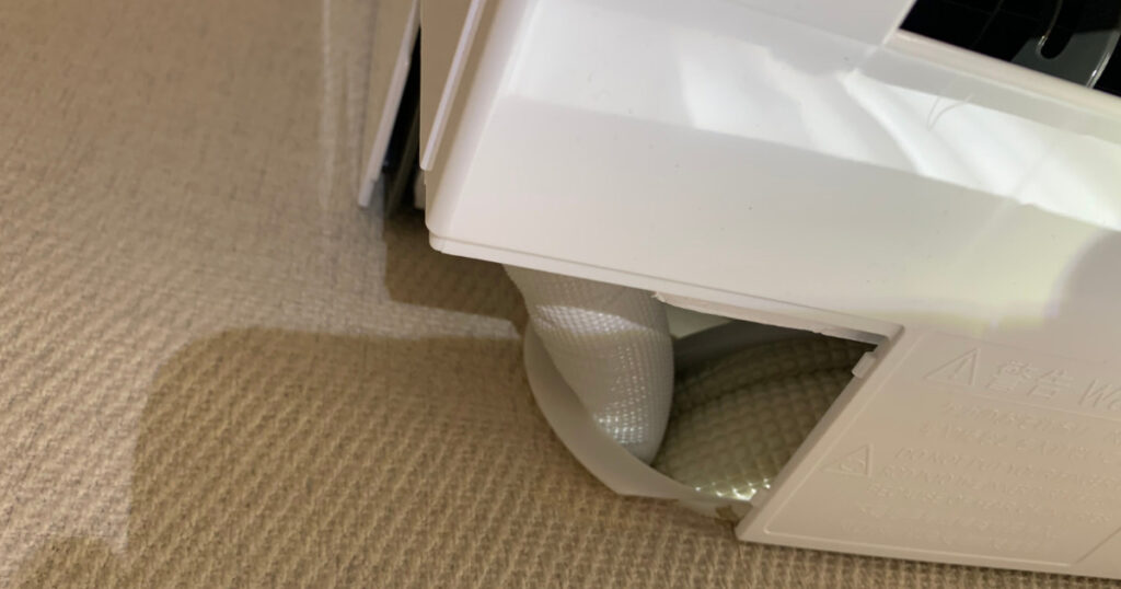 続いて、部屋の中でもスリーブが確認出来る比較的簡単なエアコンです。