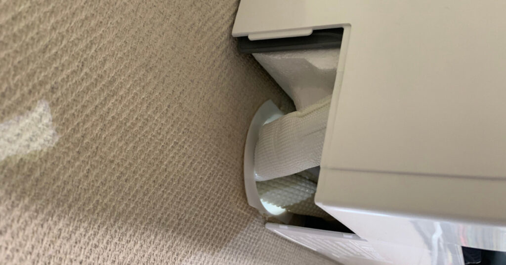 日立製、三菱製はエアコンの左右角のカバーが外れるタイプがあるのでスリーブが丸見え!