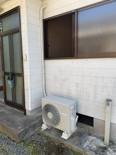 壁に直接エアコンが付いてますが1番シンプルな設置方法なんですよね〜