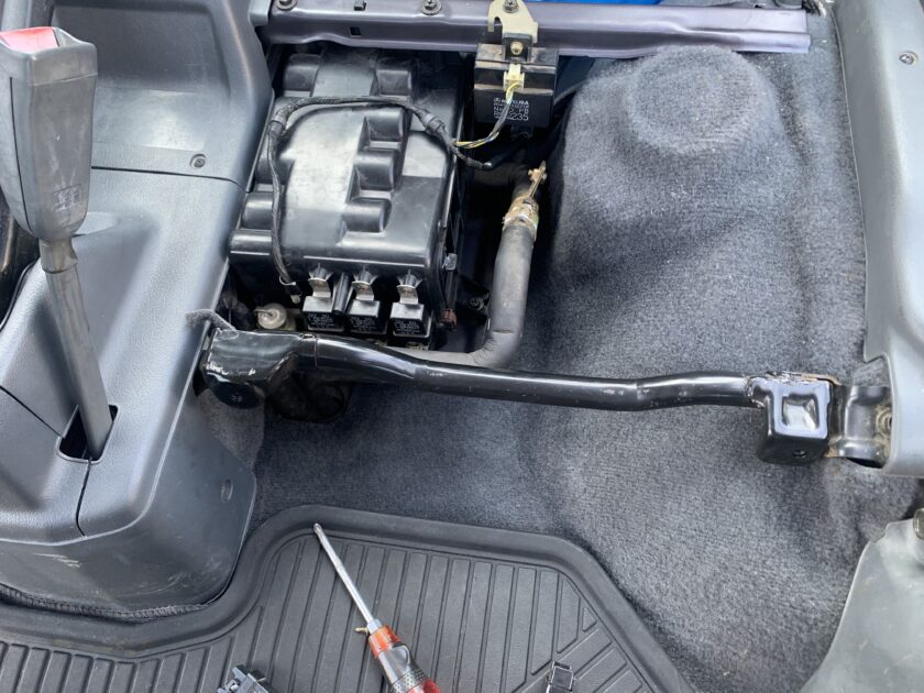 運転席下にエバポレーターのリレーが付いてるのが分かります♪